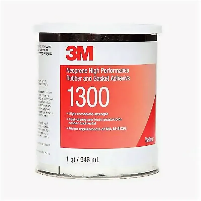 Клей 3M 1300 подходит для склеивания резины. Клей можно использовать для соединения металлов, дерева, многих пластиков, неопренового, бутилового и стирол-бутадиенового каучуков. Имеет высокую начальную прочность и термостойкость.